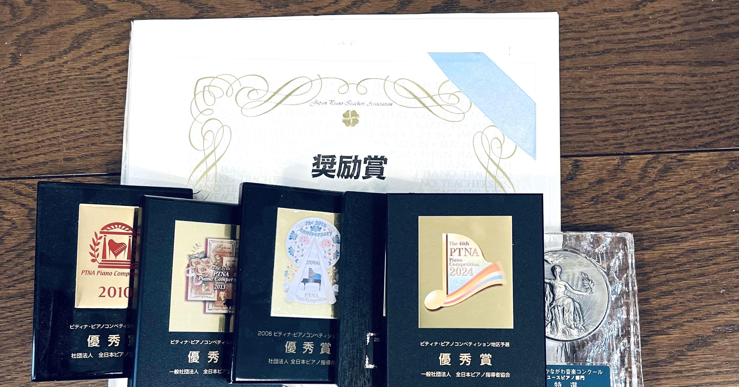 ピティナA2級〜 E級 地区本選奨励賞、優秀賞程度 神奈川コンクール入選 特選 教育連盟オーディション 奨励賞 全国大会入選などの入賞歴があります。