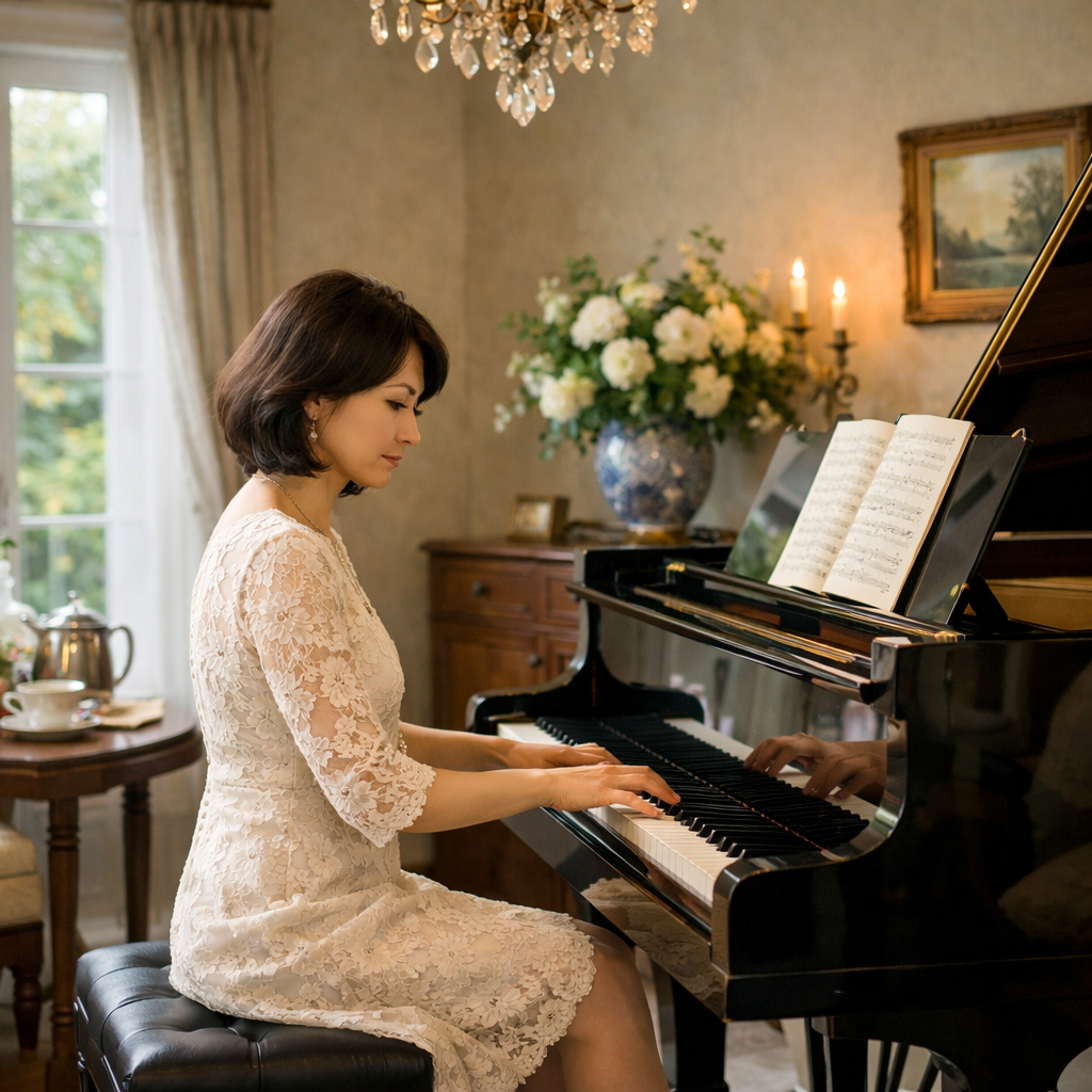 ピアノのご経験の有無関係なく、ご希望の曲を弾けるように計画を立てて進められます。再開されて楽しみつつ、年齢に見合う深い表現で納得いく演奏を目指されたり