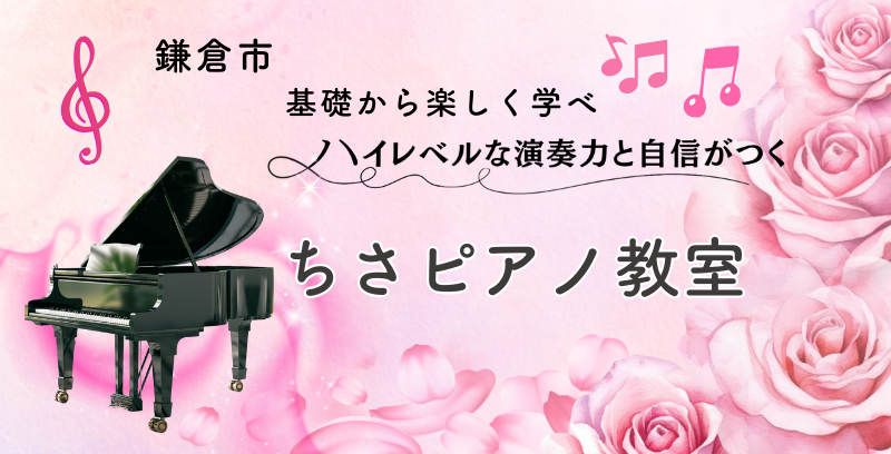 鎌倉市 「ちさピアノ教室」では、生徒1人1人に寄り添い否定語は使わず、長所をどんどん伸ばします。弱点はわかりやすく補強していきテクニックと表現において曖昧なところがなくなるまで指導します。また中上級、ハイレベルまでしっかり指導できるため継続している間に本格的な演奏力が身に付きます。生徒もコツコツと努力ができ、忍耐強くやり切ることにより、自信がつきます。